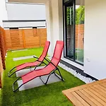 Apartment #12Lunipebega Timişoara van 55 m² ligt op 25 minuten lopen vanaf de Pădurea Verde. Het 1-slaapkamer appartement omvat een terras met uitzicht op de tuin.